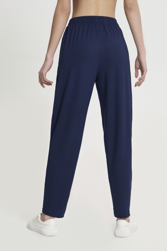Брюки - бананы. Карманы в боковом шве. Пояс на резинке с двойной отстрочкой.