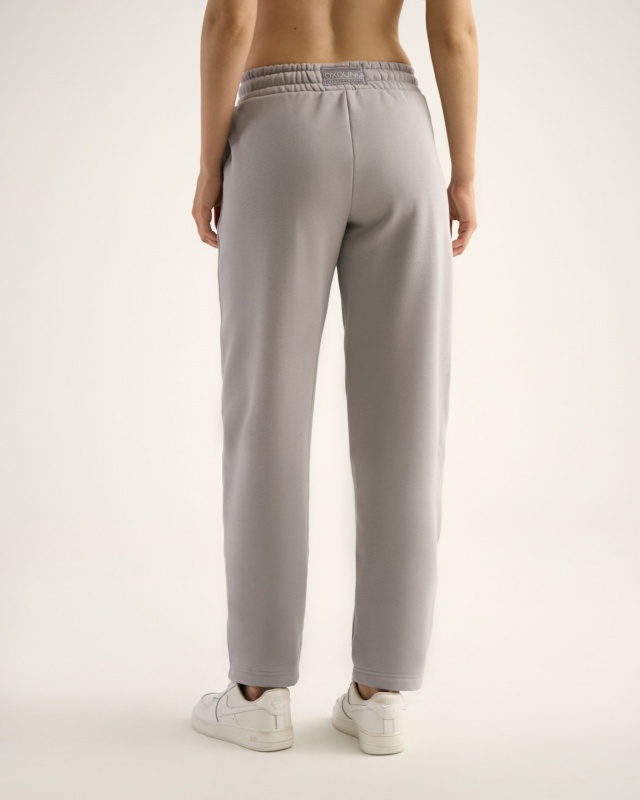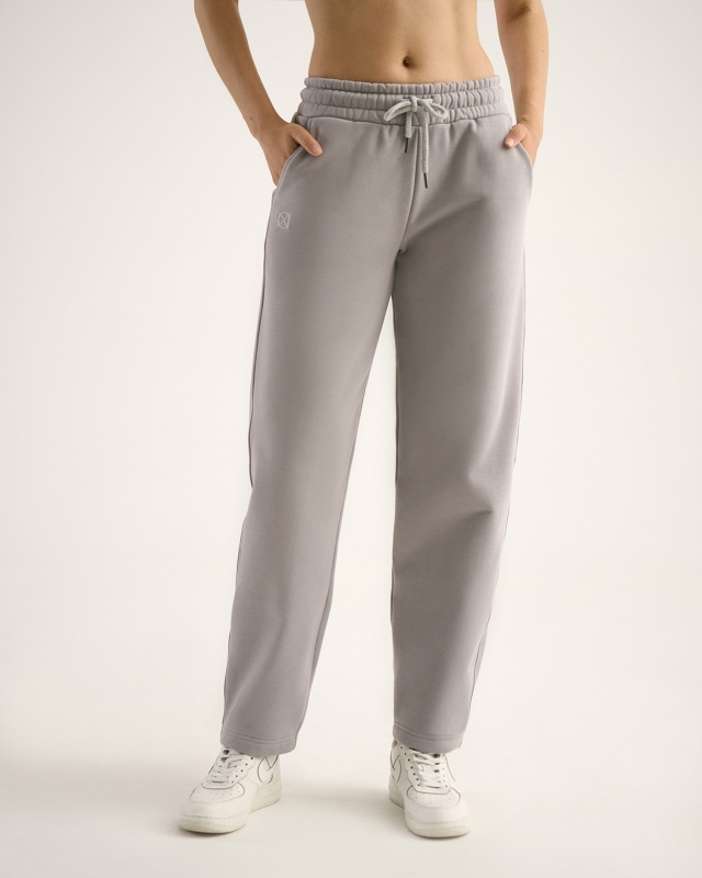 Брюки-бананы из интерсофта свободного кроя с боковыми карманами, зауженные к книзу. Широкий эластичный пояс со шнуром.