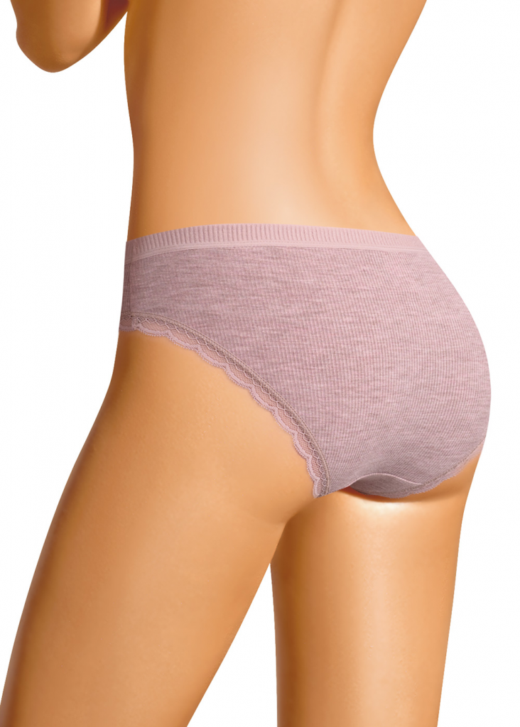 Трусы бикини женские из эластичного вискозного полотна- кашкорсе лапша. Обработка краев по талии - жаккардовая резинка, по ноге - узкое кружево.