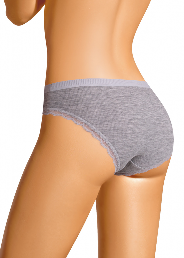 Трусы бикини женские из эластичного вискозного полотна- кашкорсе лапша. Обработка краев по талии - жаккардовая резинка, по ноге - узкое кружево.
