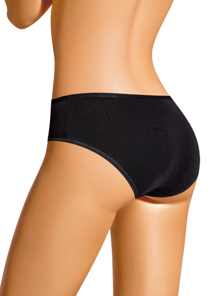 Трусы бикини женские из эластичного хлопкового полотна. Обработка краев по талии окантовочная резинка, по ноге узкая резинка с застилом (сверху). Спереди резы обработка зубы.