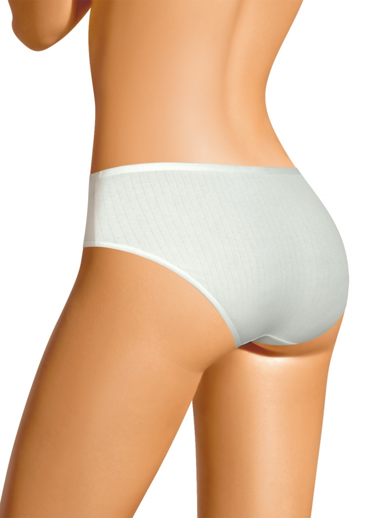 Трусы бикини женские из эластичного хлопкового полотна. Обработка краев по талии окантовочная резинка, по ноге узкая резинка с застилом (сверху). Спереди резы обработка зубы.