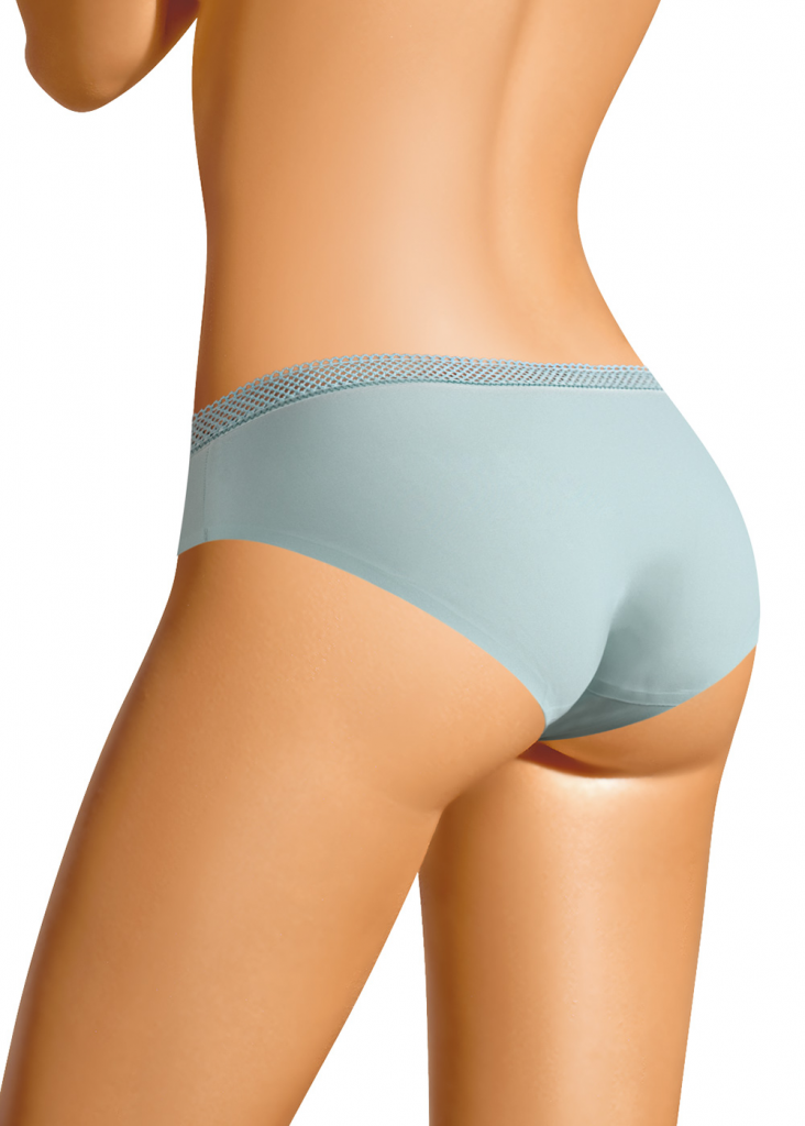 Трусы-бикини женские из полиамида с эластаном. Обработка краев по талии - ажурная широкая резинка, по ноге - подклееный край. Хлопковая ластовица.