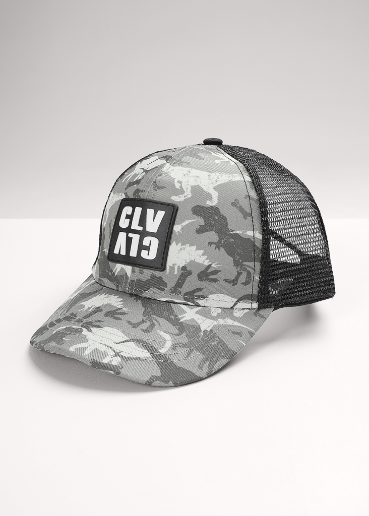 Детская бейсболка. Модель сшита из 6-ти клиньев, вставка из сетки в затылочной части обеспечивает вентиляцию. Размер бейсболки 52-54, регулируется при помощи пластиковой застежки. Декорирована игровым принтом "динозавры" и силиконовой нашивкой-логотип.