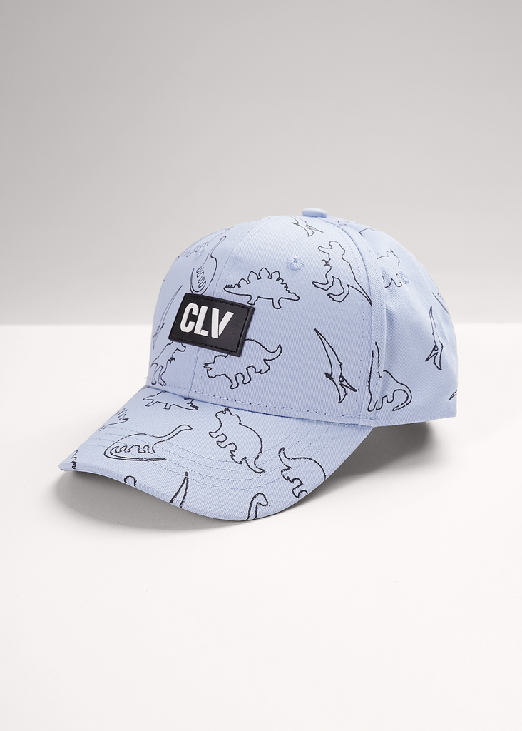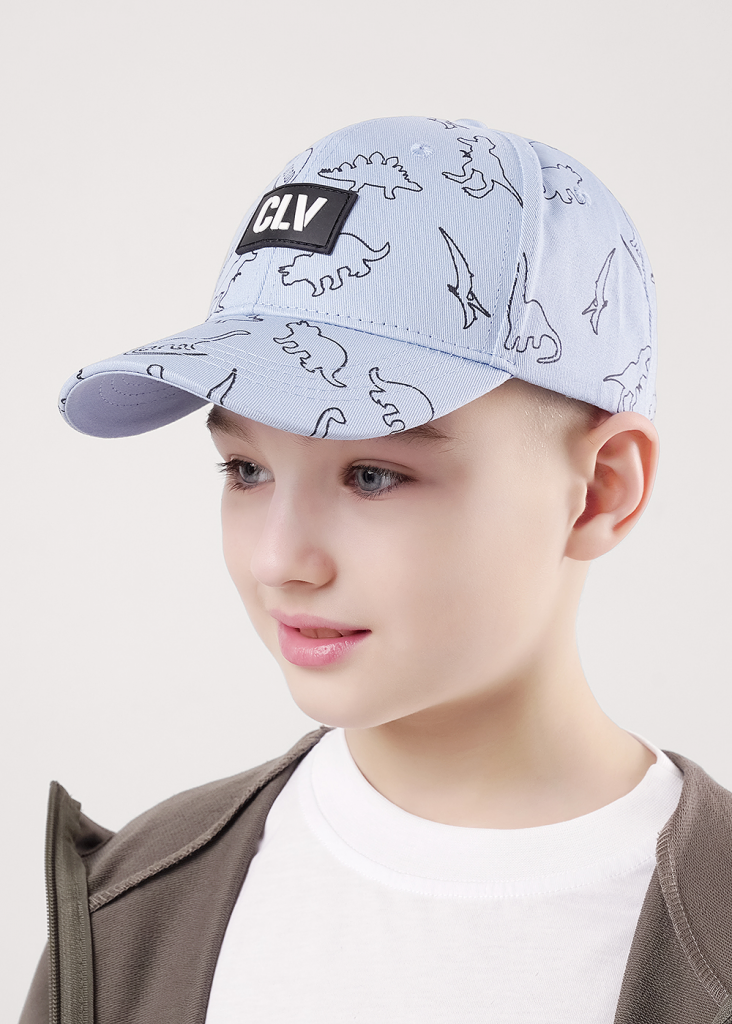Детская бейсболка. Модель сшита из 6-ти клиньев, небольшие отверстия в кепке обеспечивают вентиляцию. Размер бейсболки 52-54, регулируется при помощи застежки-липучки. Декорирована набивным принтом "динозавры" и силиконовой нашивкой.