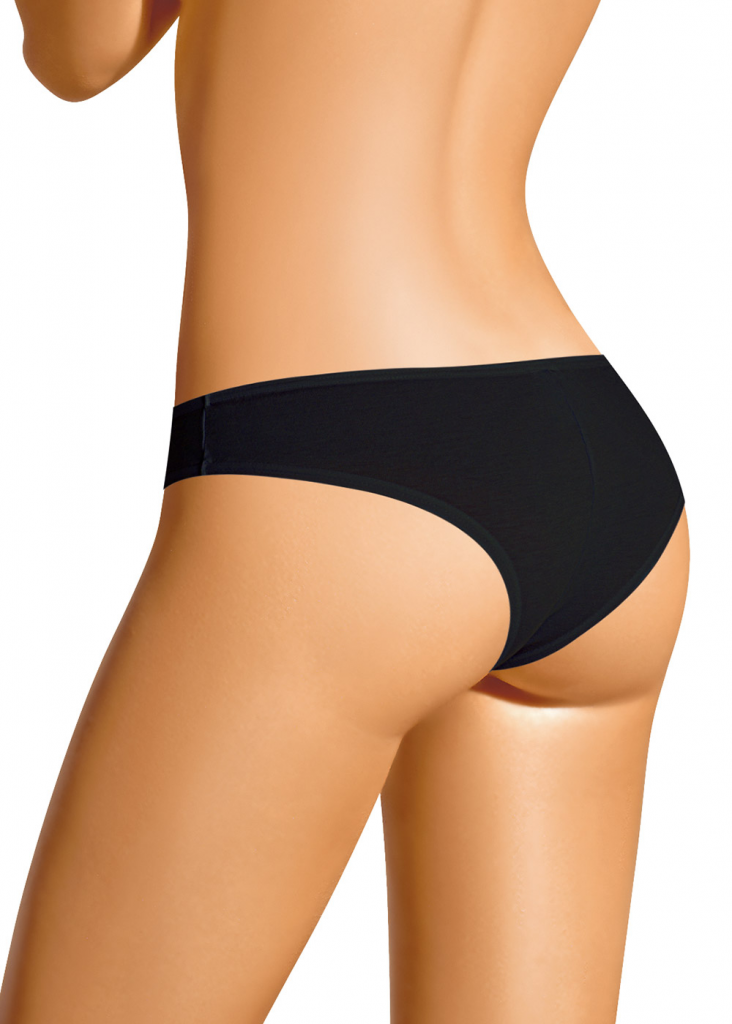 Трусы бразилиано женские из эластичного хлопкового полотна. По спинке средний шов. Обработка краев - узкая окантовка. Фирменный жаккардовый логотип.