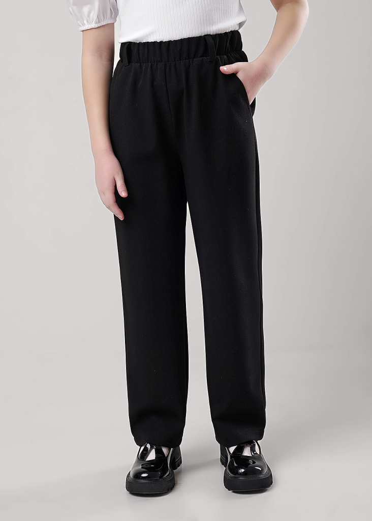 Стильные базовые брюки умеренного объёма из габардина прекрасно дополнят любой гардероб! Комфортная посадка, функциональные карманы, лаконичная цветовая гамма- всё для создания базовых повседневных и школьных образов!