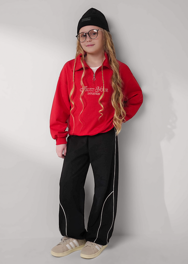 Новинка- брюки с декоративными контрастными кантами! Объём брюк дополнительно регулируется фиксаторами по низу изделия. Создавай классные повседневные луки, сочетая брюки с толстовками из новой коллекции и будь в тренде!