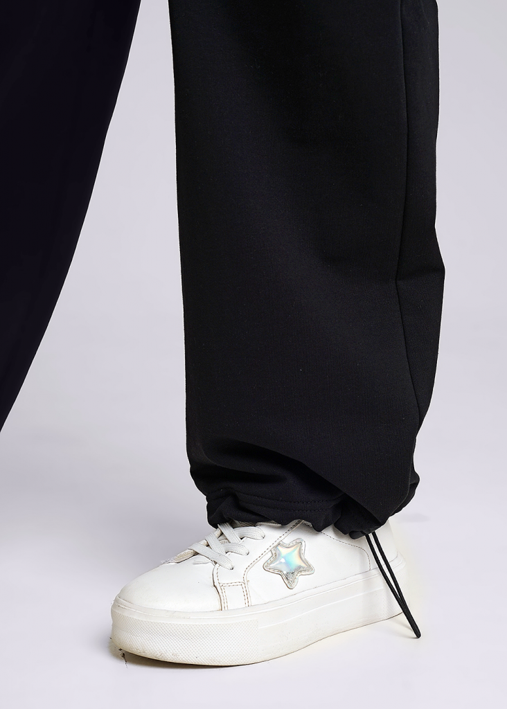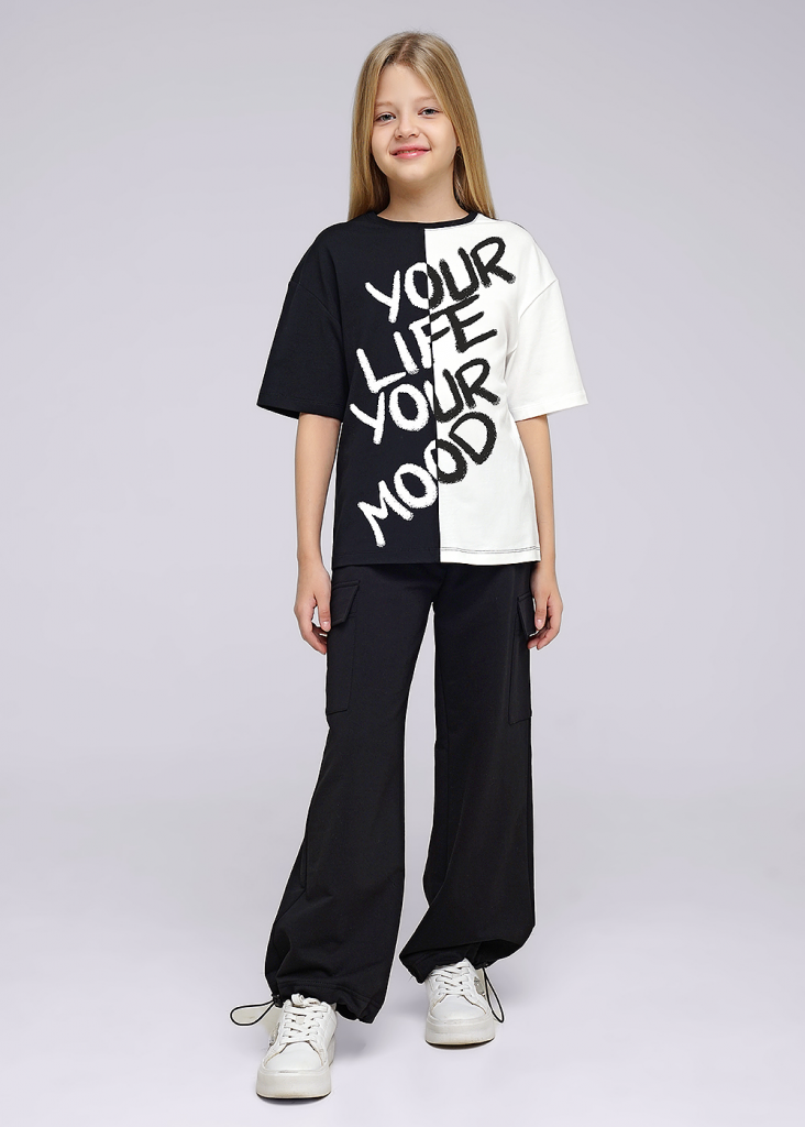 Популярная модель широких брюк из футера должна быть у каждой юной модницы! Модель дополнена крупными накладными карманами и регулировкой по низу с помощью фиксаторов. Пояс для комфортной посадки с резинкой и внутренним кипером.