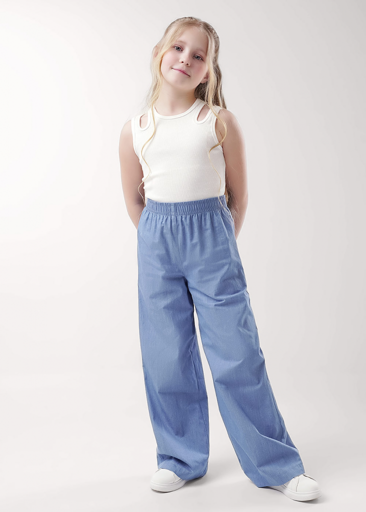 Ультрамодные широкие брюки из джинсового материала - musthave твоего летнего гардероба! Свободная посадка, прямой силуэт, удобные карманы и натуральная ткань. Такие брюки легко сочетаются с любыми топами, рубашками и футболками.