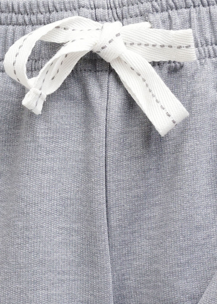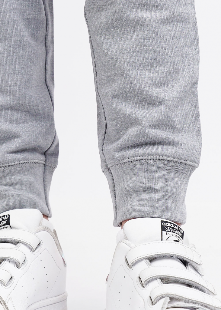 Базовые брюки из хлопкового футера без начеса с эластичными манжетами из кашкорсе. Пояс прострочен с резинкой, регулируется кипером. По шву сидения и по манжетам - прострочки