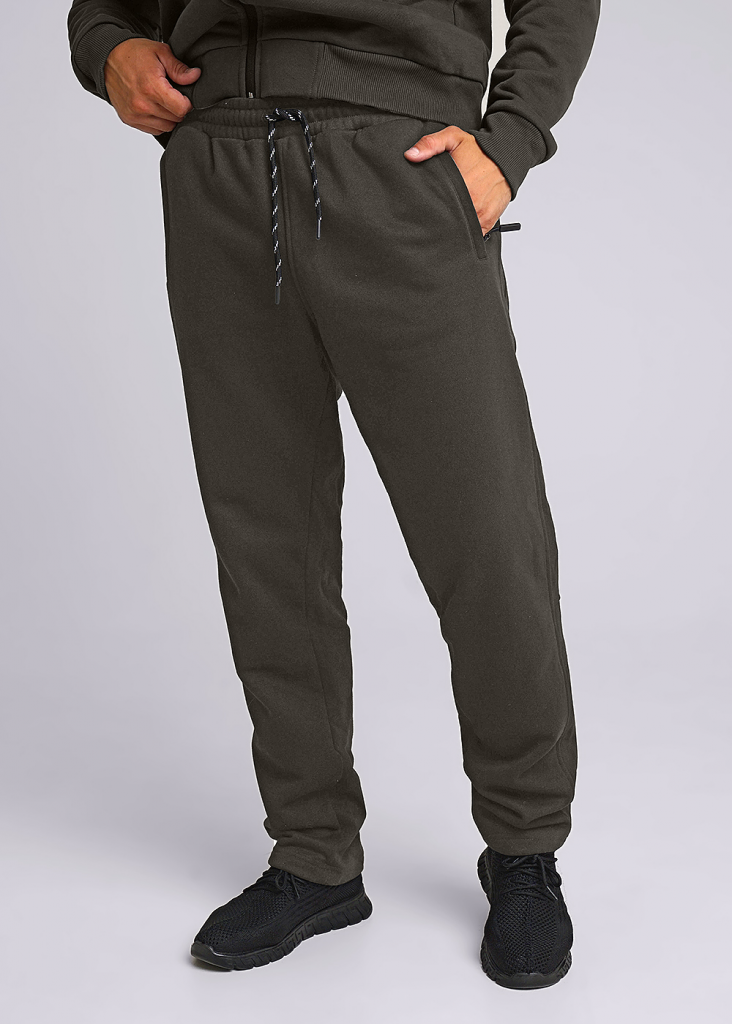 Брюки мужские прямые из плотного футера с начёсом, пояс на резинке с регулируемым шнуром. Функциональности модели придают боковые карманы на молнии. Брюки очень эргономичные и удобные, прекрасно подойдут для повседневной носки.