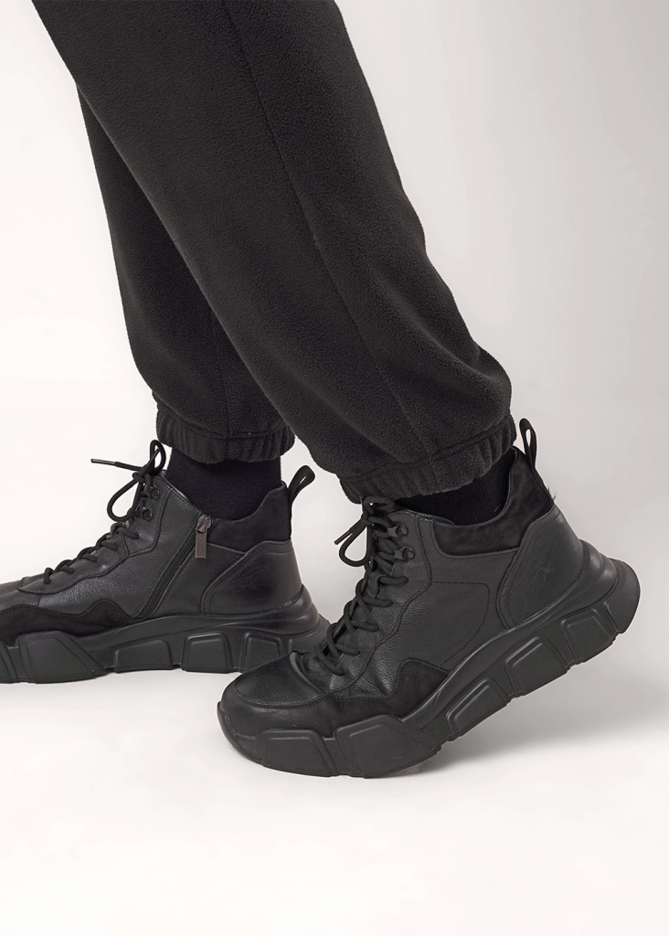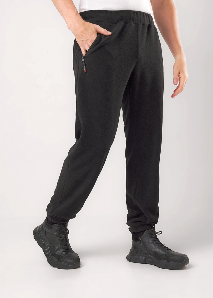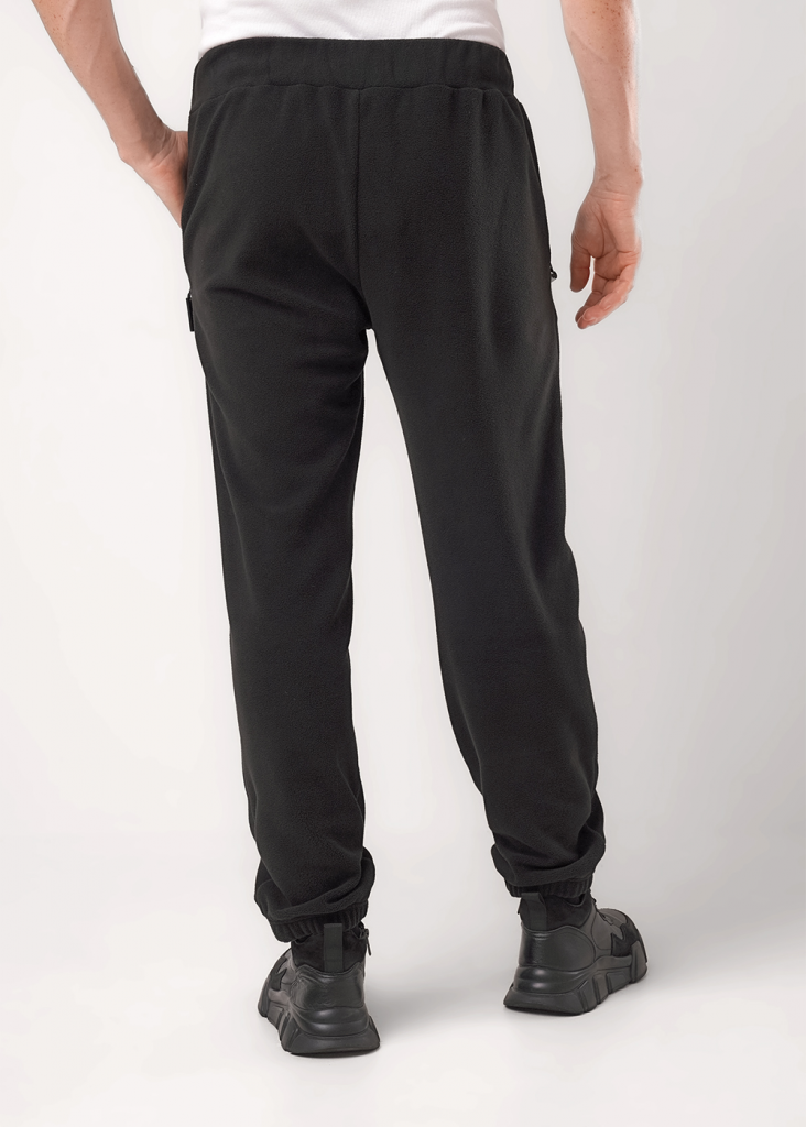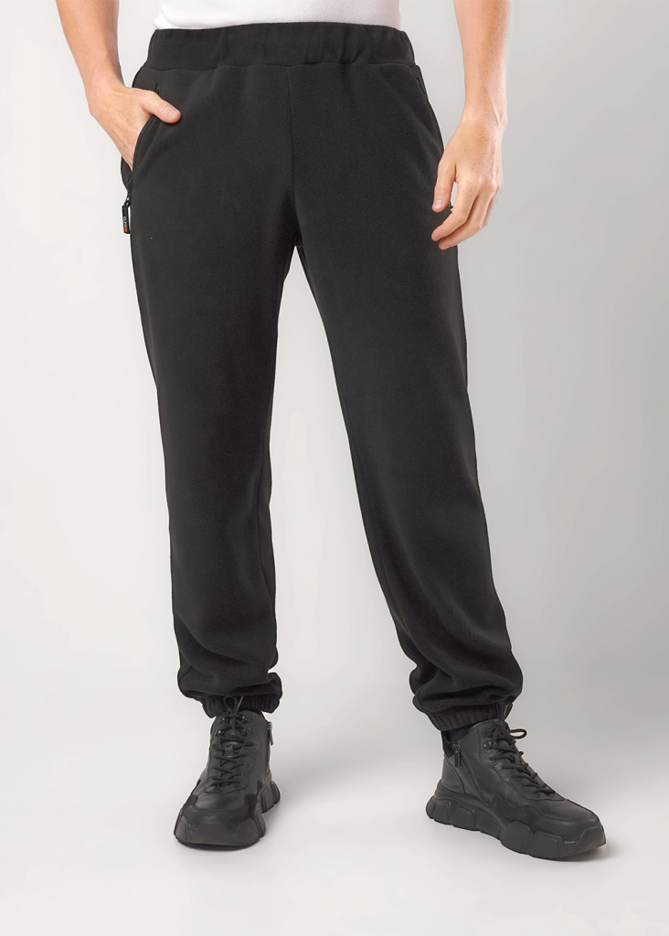 Мужские брюки из мягкого приятного полотна флис на манжете. Изделие дополнено функциональными карманами на молнии и шнуром по поясу. Данные брюки станут незаменимым вариантом в холодное время года.