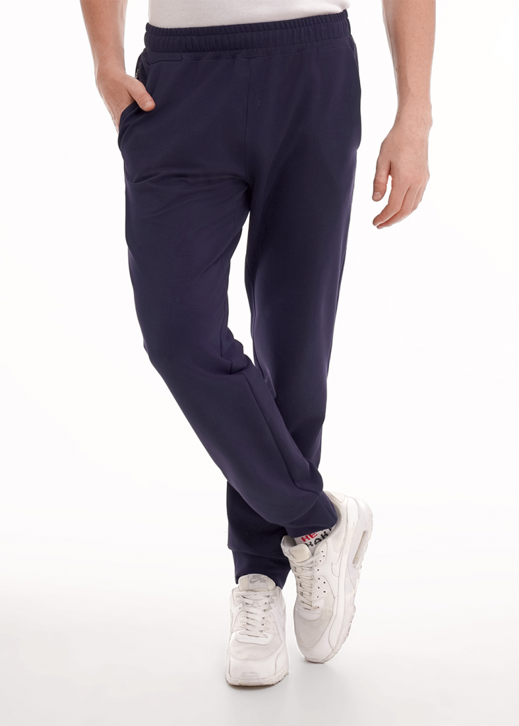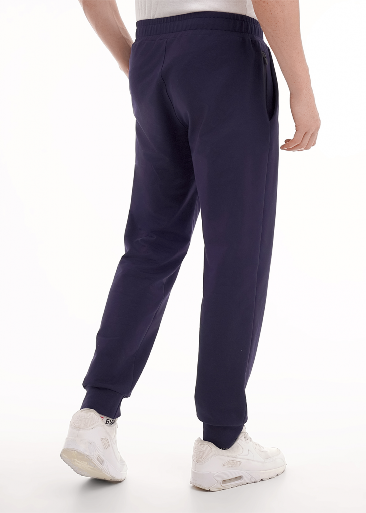 Брюки мужские на манжете из трикотажного полотна с регулируемой талией. Функциональность модели придают боковые карманы,а интересным акцентом в изделии является имиджевый принт и задний рез. Брюки эргономичные и удобные.