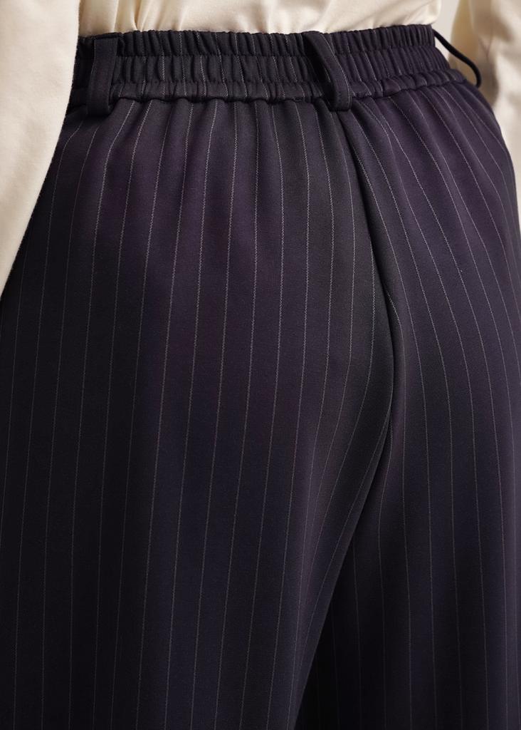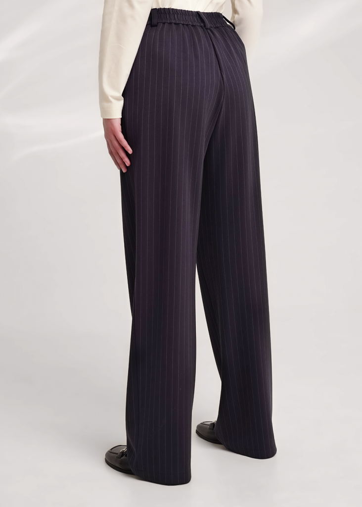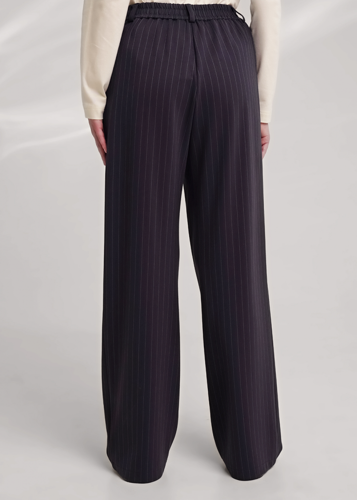 Брюки зауженные из поливискозного трикотажного полотна джерси. Притачной пояс со шлёвками, по спинке на внутренней резинке. Спереди гульфик с молнией и крючком. Боковые карманы с отрезным бочком.
