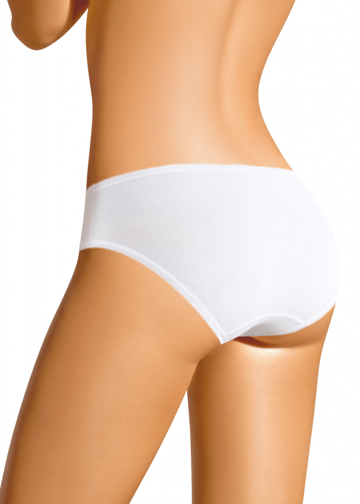 Трусы-слипы женские из эластичного хлопкового полотна. Обработка краев - ажурная резинка с фестоном. По переду настрачивается кружево.