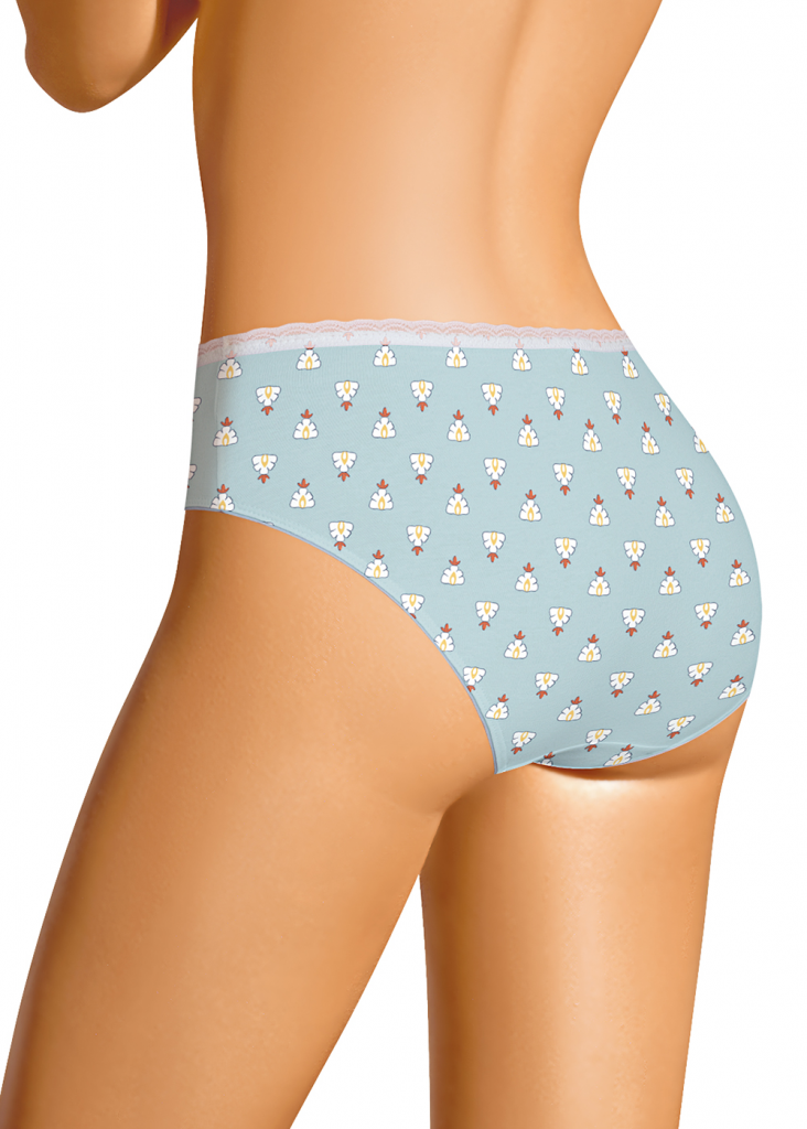 Трусы слипы женские из эластичного хлопкового полотна. Обработка краев по талии кружево с резинкой, по ноге - полуокантовка. По центру переда сборка на резинку, атласный бант.