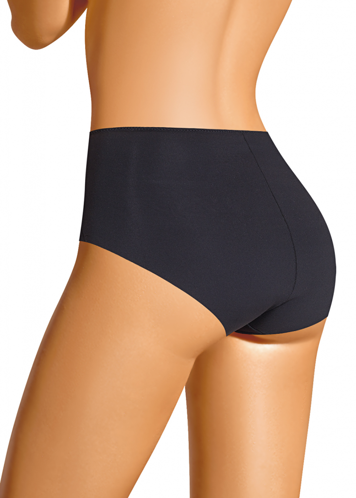 Трусы слипы с завышенной посадкой, сзади и по линии бикини бесшовная гладкая обработка, спереди декоративные диагональные вставки из плотной сетки, перед дублирован сеткой, по талии обработка с зигзагом и узкой резинкой