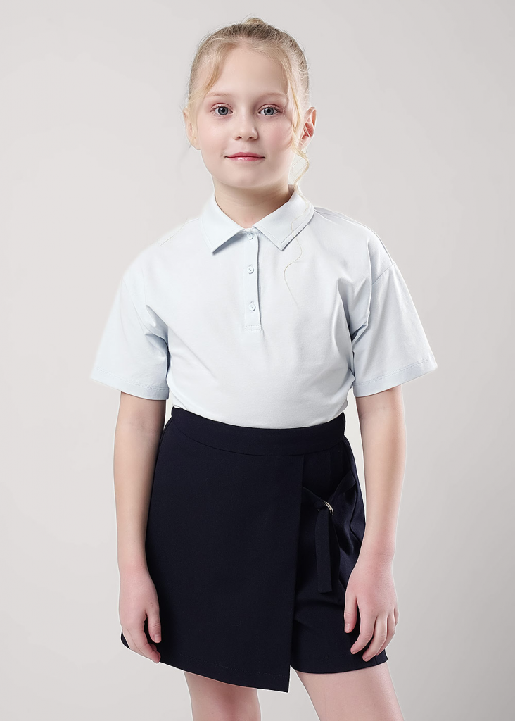 Базовое поло с коротким рукавом станет отличным дополнением к вашему гардеробу! Модель с отложным воротником и планкой на пуговицах. Поло отлично подойдет для создания классных повседневных и школьных образов