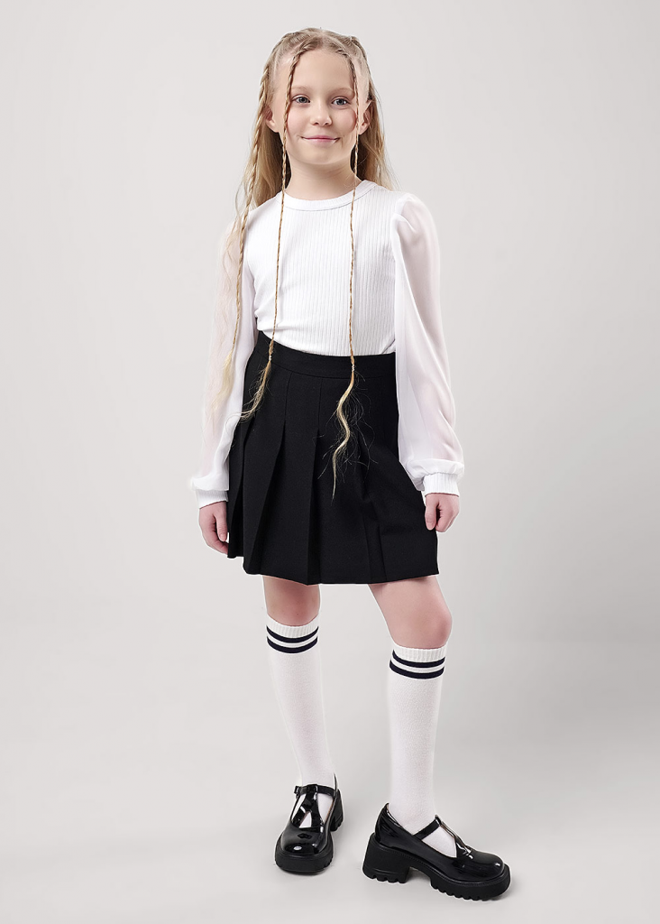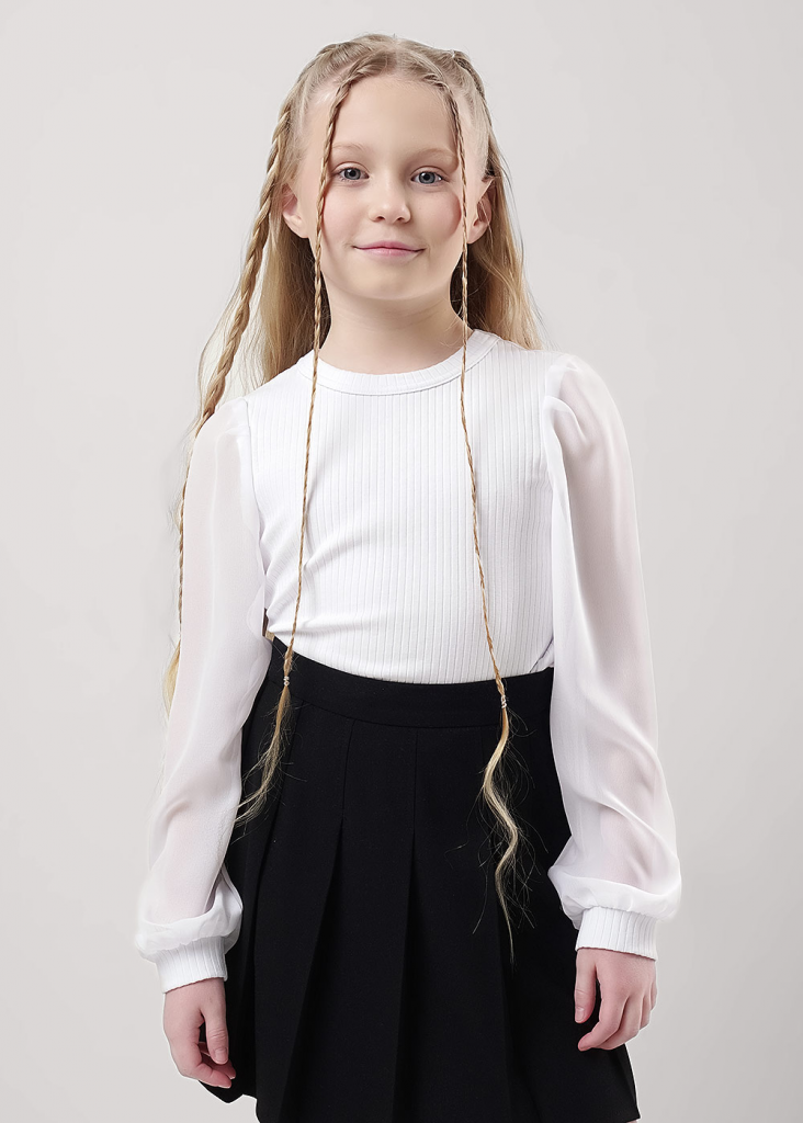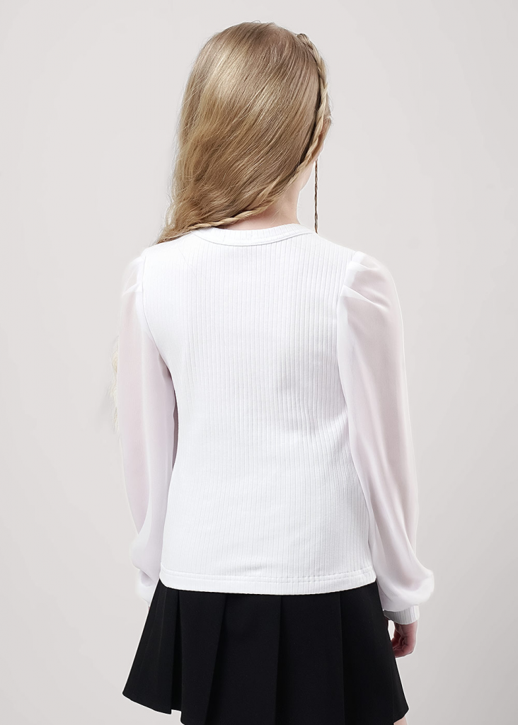 Стильная блузка с пышными шифоновыми рукавами станет отличным дополнением к вашему гардеробу! Модель выполнена из лапши. Блузка отлично подойдет для создания повседневных и школьных образов!