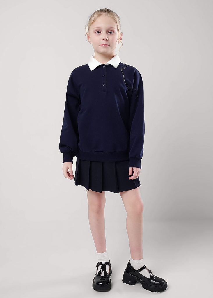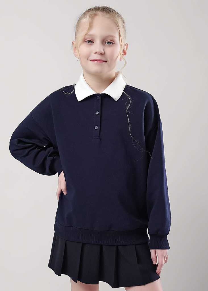 Стильный базовый джемпер станет модной новинкой в твоём гардеробе! Комфортная посадка по фигуре, актуальный объём и практичная цветовая гамма- то, что нужно для создания повседневного школьного образа и отличного настроения!