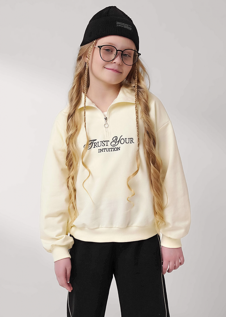 Стильная толстовка из мягкого футера- идеальное дополнение к гардеробу! Модель украшена лаконичной контрастной вышивкой. Толстовка с воротником- стойкой с короткой молнией и эластичными манжетами. Создавай яркие спортивные луки с новой коллекцией Clеver!