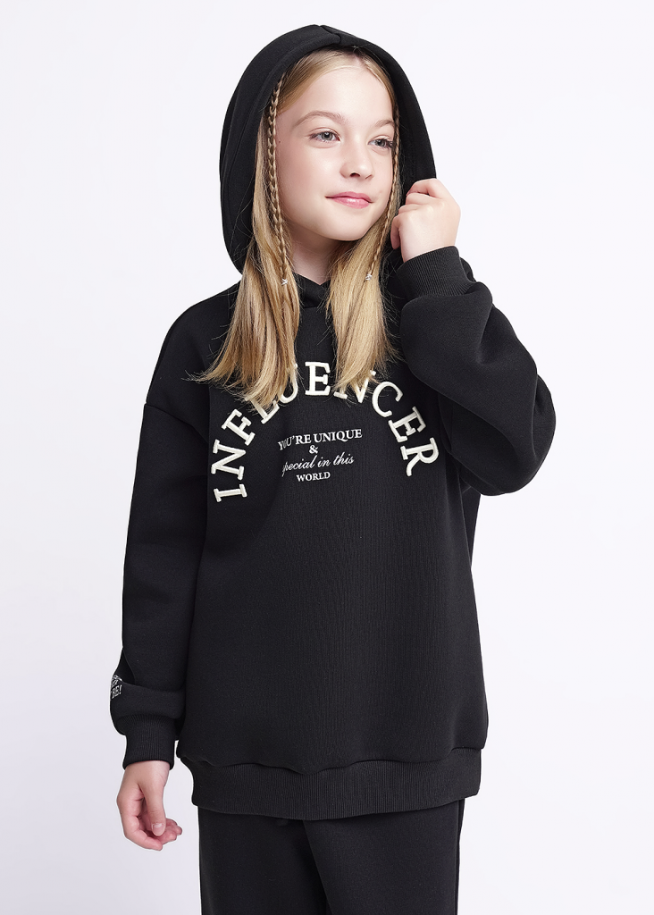 Мягкое тёплое худи из футера с начёсом идально подойдёт для прогулок в прохладную погоду. Модель дополнена уютным капюшоном и стильным принтом. Худи отлично подойдёт для создания стильного и практичного образа на каждый день!