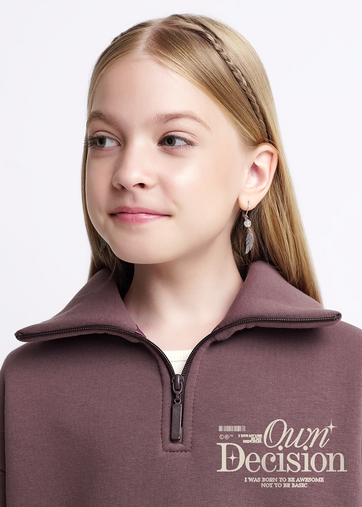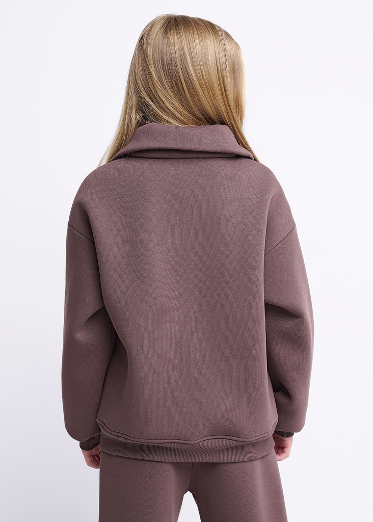 Мягкая тёплая толстовка из футера с начёсом идально подойдёт для прогулок в прохладную погоду. Модель дополнена уютным воротником- стойкой и короткой молнией спереди. Толстовка идеально подойдёт для создания стильного и практичного образа на каждый день!