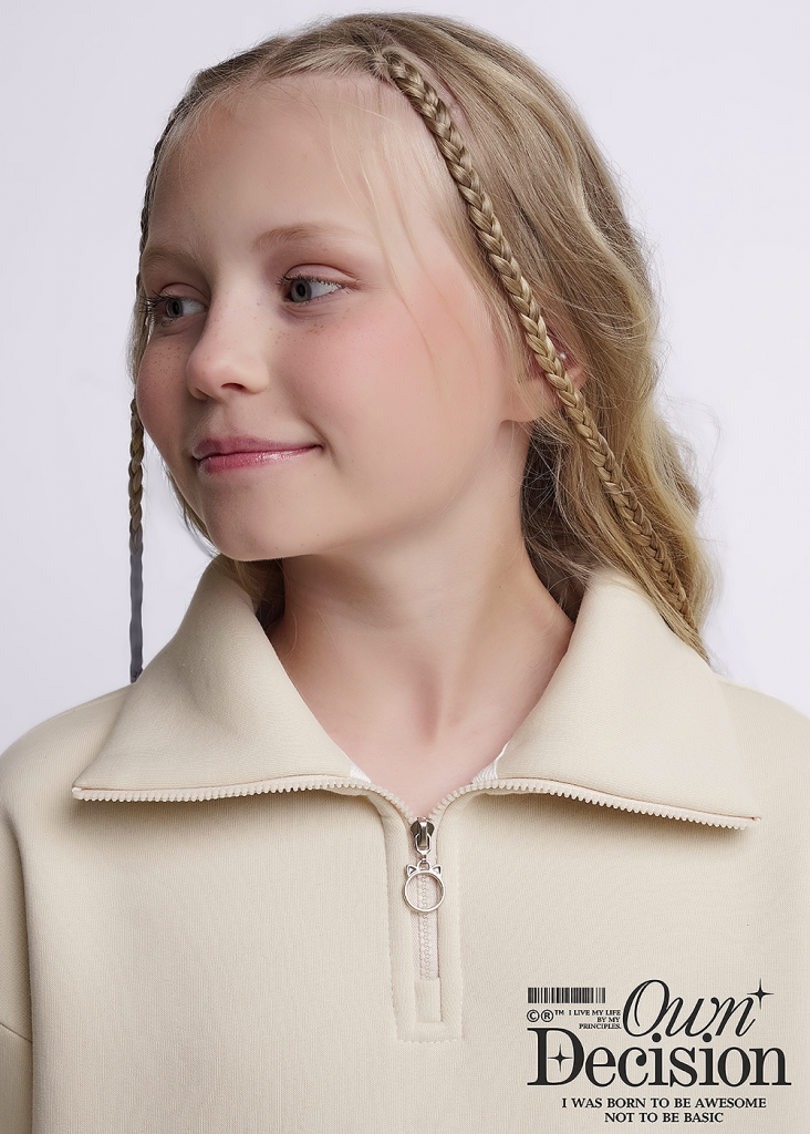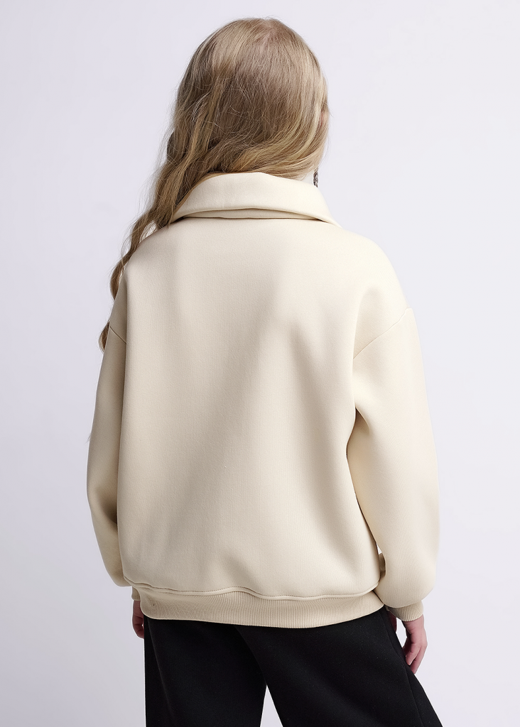 Мягкая тёплая толстовка из футера с начёсом идально подойдёт для прогулок в прохладную погоду. Модель дополнена уютным воротником- стойкой и короткой молнией спереди. Толстовка идеально подойдёт для создания стильного и практичного образа на каждый день!