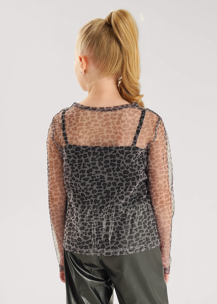 Двухслойный трендовый укороченный лонгслив из сетки. Круглая эластичная горловина. Внутренний слой -майка выполнена из хлопка с эластаном. Прекрасно подойдет как для праздника так и для повседневной носки.