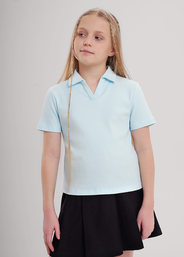 Базовый джемпер из лапши с коротким рукавом, отложным воротником и планкой. Классический джемпер отлично подойдет для создания повседневных образов, хорошо сочетается с брюками, юбками и повседневными джинсами.
