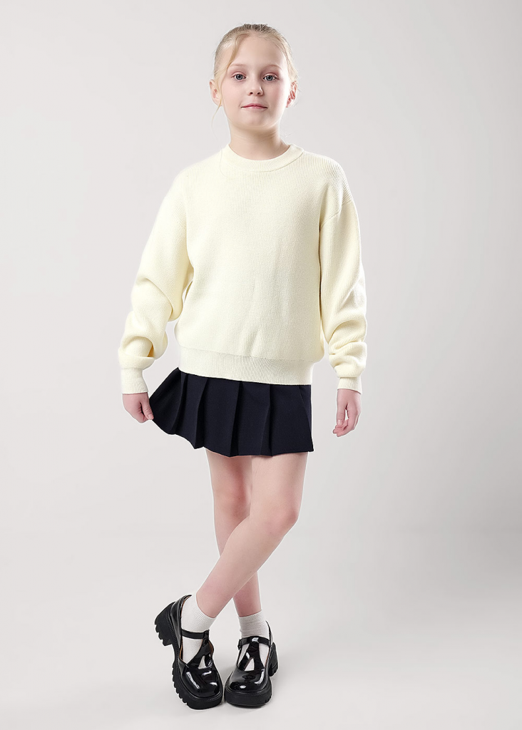 Стильный джемпер из хлопковой пряжи с добавлением акрила. Трендовый оттенок, свободный силуэт, спущенная линия плеча, фактурное переплетение. По горловине, низу рукавов и изделия эластичная вязка.