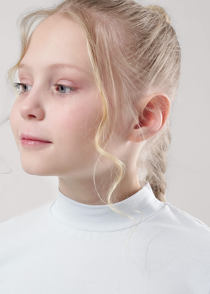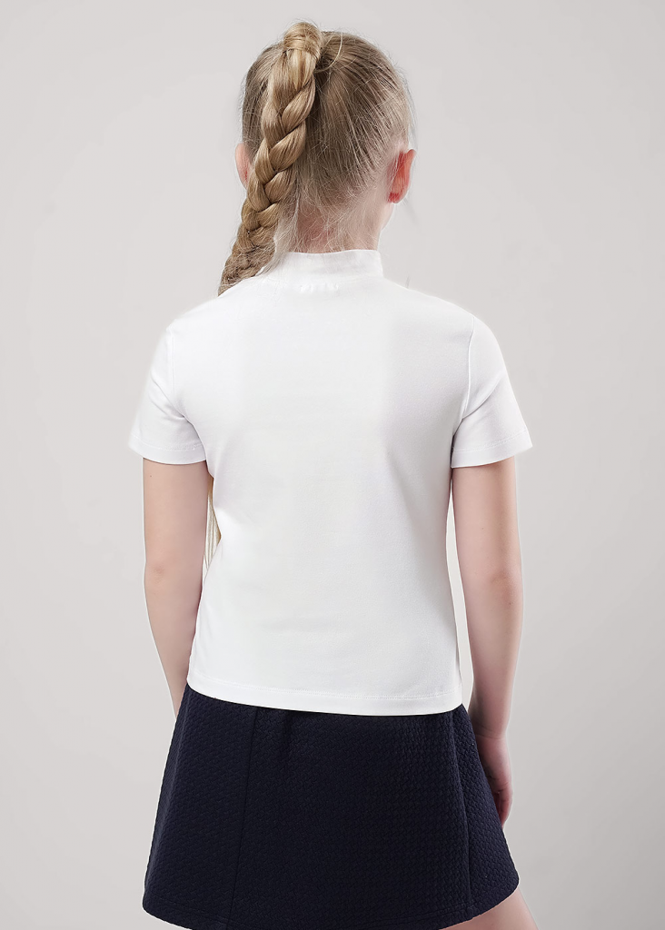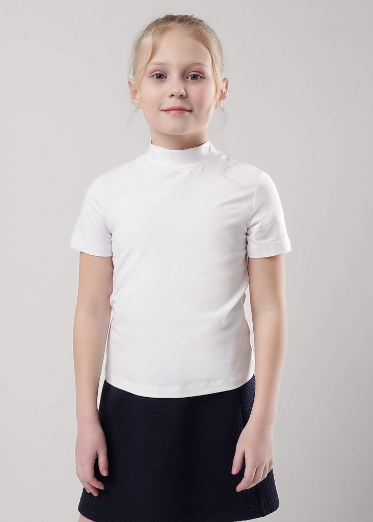 Базовый джемпер со стойкой и коротким рукавом станет отличным дополнением к вашему гардеробу! Модель выполнена из хлопкового полотна с добавлением эластана. Джемпер отлично подойдет для создания классных повседневных и школьных образов