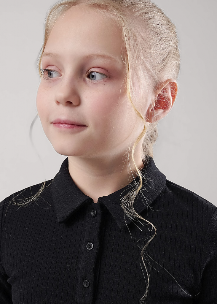 Базовый джемпер из лапши станет отличным дополнением к вашему гардеробу! Модель с отложным воротником и планкой на пуговицах. Джемпер отлично подойдет для создания классных повседневных и школьных образов