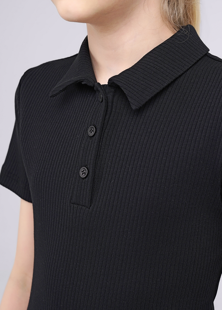 Базовый джемпер из лапши станет отличным дополнением к вашему гардеробу! Модель с коротким рукавом, отложным воротником и планкой на пуговицах. Джемпер отлично подойдет для создания классных повседневных и школьных образов