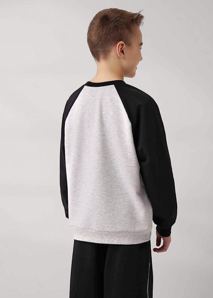 Стильный меланжевый свитшот из мягкого трикотажа- идеальное дополнение к твоему гардеробу! Модель с контрастными рукавами покроя реглан и лаконичным авторским принтом- идеальное решение на каждый день! Создавай классные повседневные луки и будь в тренде!