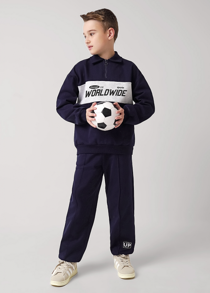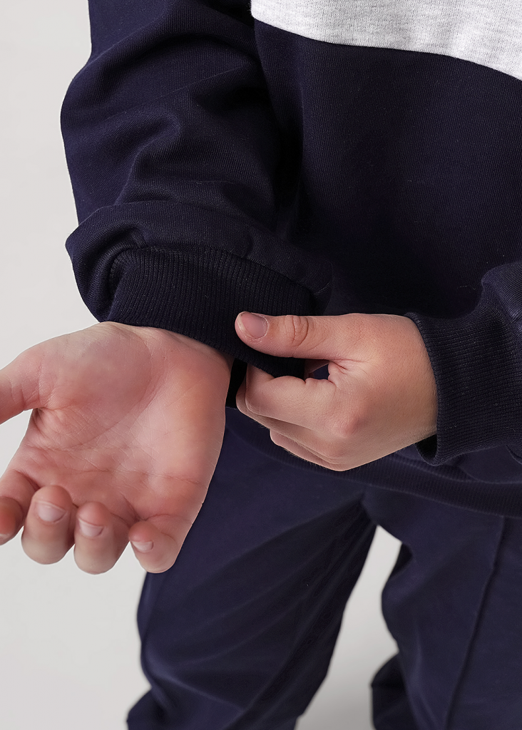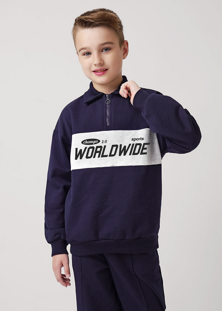 Стильный джемпер в стиле "колорблок"- то, что нужно для создания классного образа и отличного настроения! Модель из мягкого футера дополнена короткой молнией и контрастной вставкой с принтом. Воротник и манжеты выполнены из эластичного трикотажа.