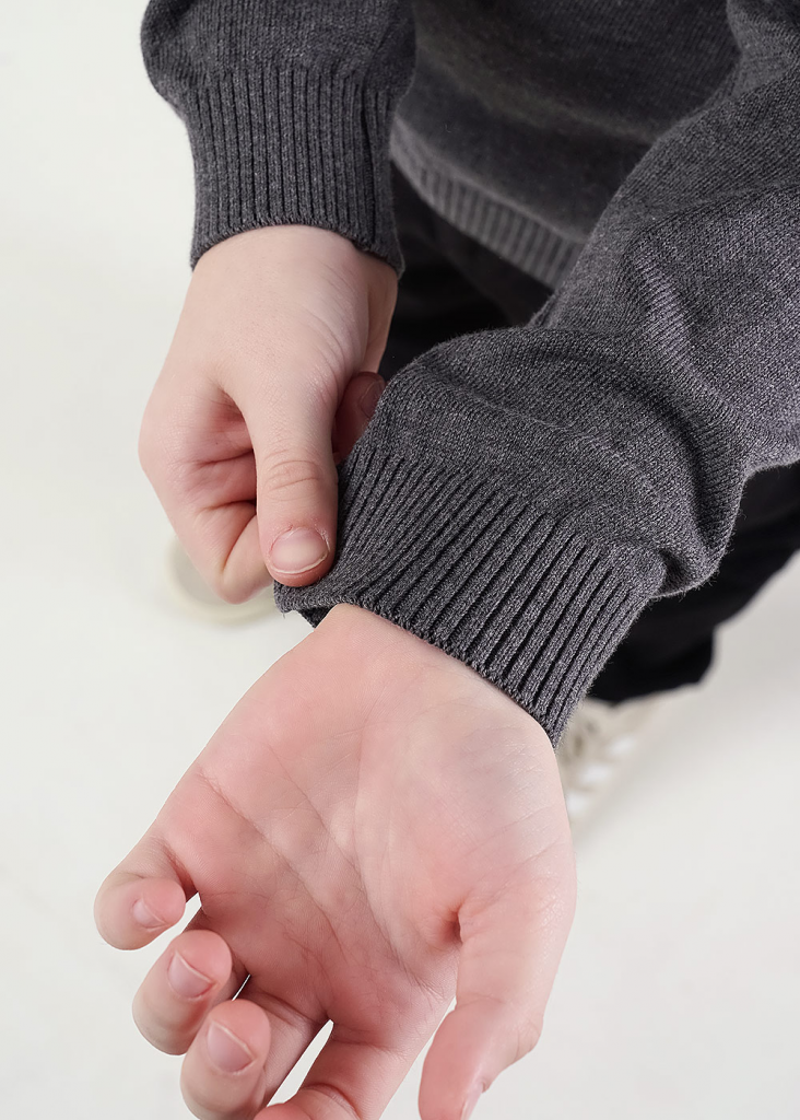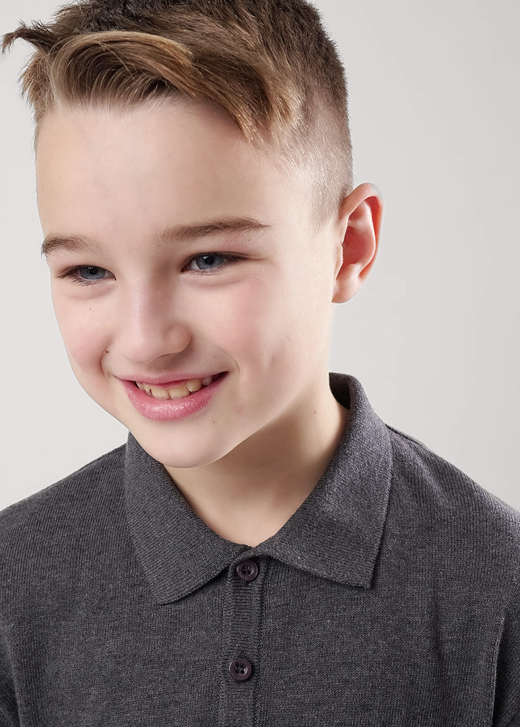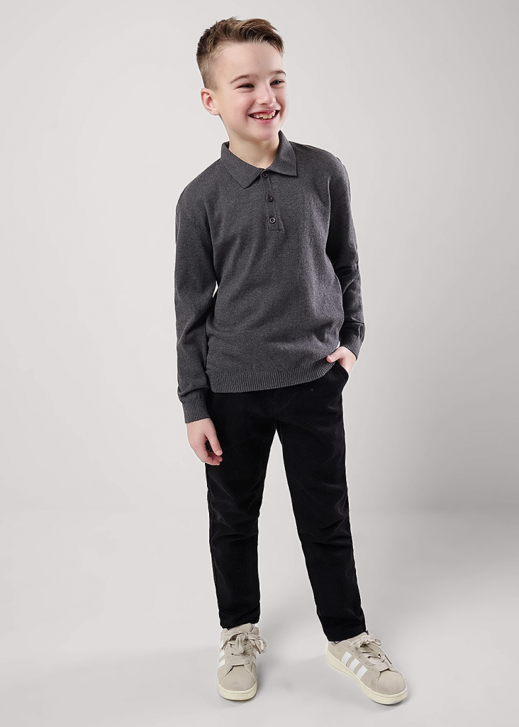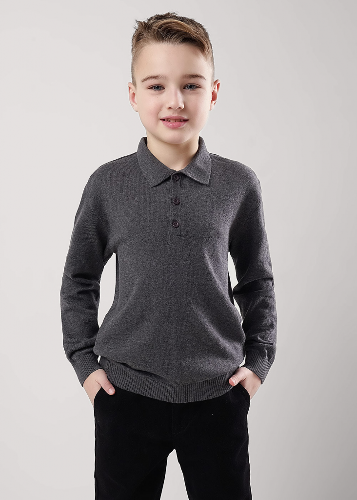 Стильное вязаное поло отлично дополнит повседневный гардероб. Модель выполнена из 100% хлопка и отлично сочетается с джинсами и школьными брюками.