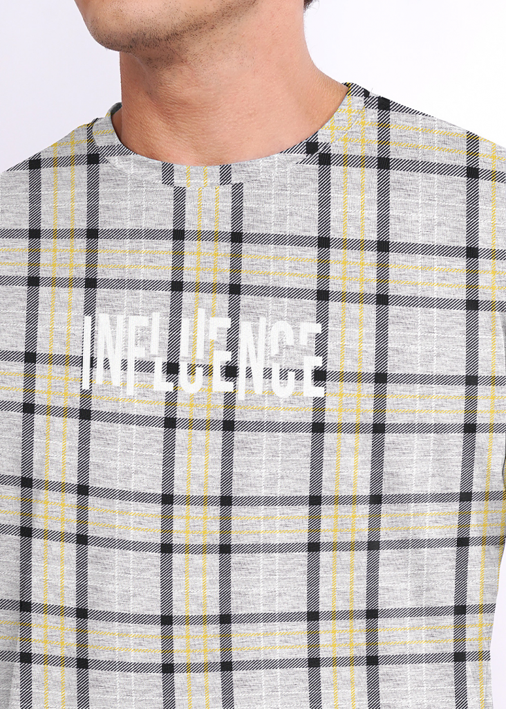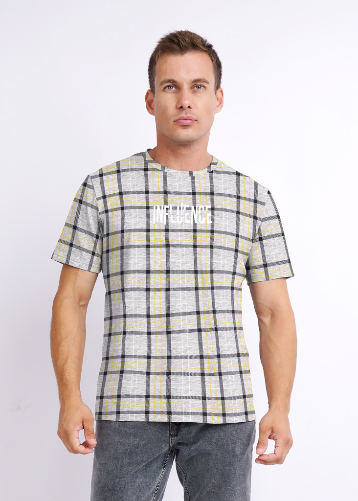 Стильная мужская футболка из хлопкового полотна с эластаном. С круглой горловиной и втачным рукавом. Оригинальность изделию придает гармоничная клетка с принтом. Отличный вариант на каждый день в сочетании с любыми брюками с толстовкой или пиджаком.