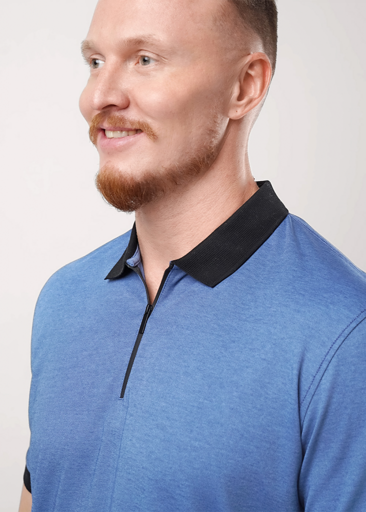 Футболка-поло с вязаными отделками. Модель с коротким рукавом на манжете и функциональной планкой на молнию. Модель можно дополнить брюками или джинсами. Отличный вариант для встреч с друзьями.