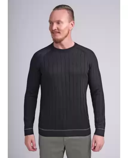 Мужской вязаный джемпер с круглым вырезом горловины и длинным рукавом реглан. Изделие выполнено из смесовой пряжи с добавление вискозы. Модель не сковывает движений и обеспечивает удобную посадку, подойдет к любому образу.