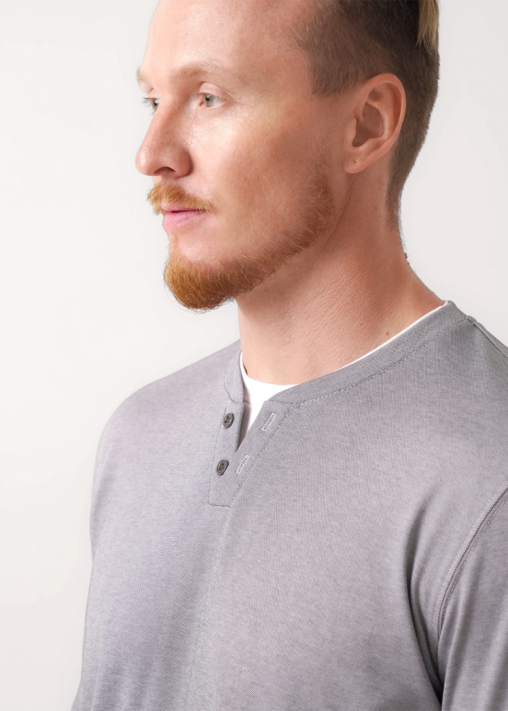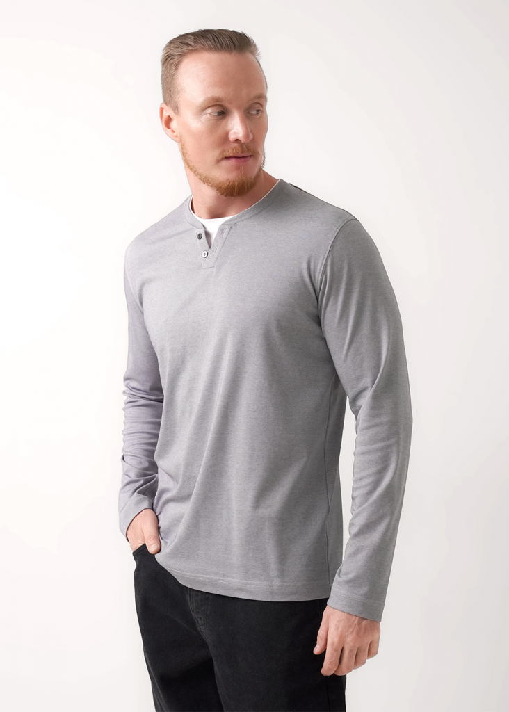 Лонгслив из трикотажного полотна "пике" с имитацией двойной горловины и удобной планкой на пуговицы. Данное изделие отличное дополнение к брюкам или джинсам. Прекрасно подойдёт для встречи с друзьями или похода на работу.