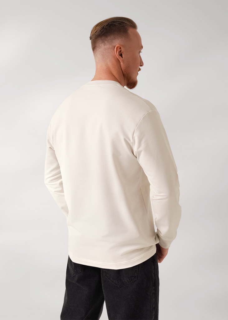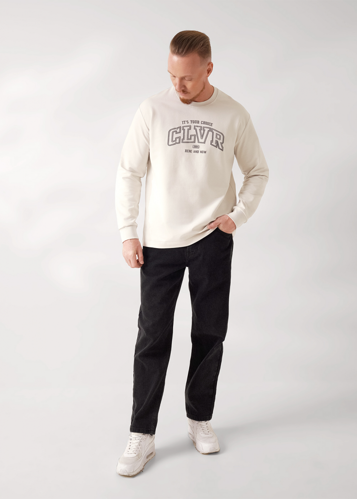 Стильный мужской джемпер из хлопкового трикотажного полотна. Изделие с круглым вырезом горловины и длинным рукавом. Модель дополняет дизайнерский принт. Идеальный вариант для повседневного использования. Хорошо сочетается с джинсами.