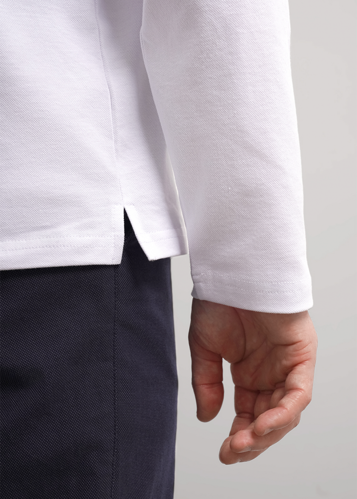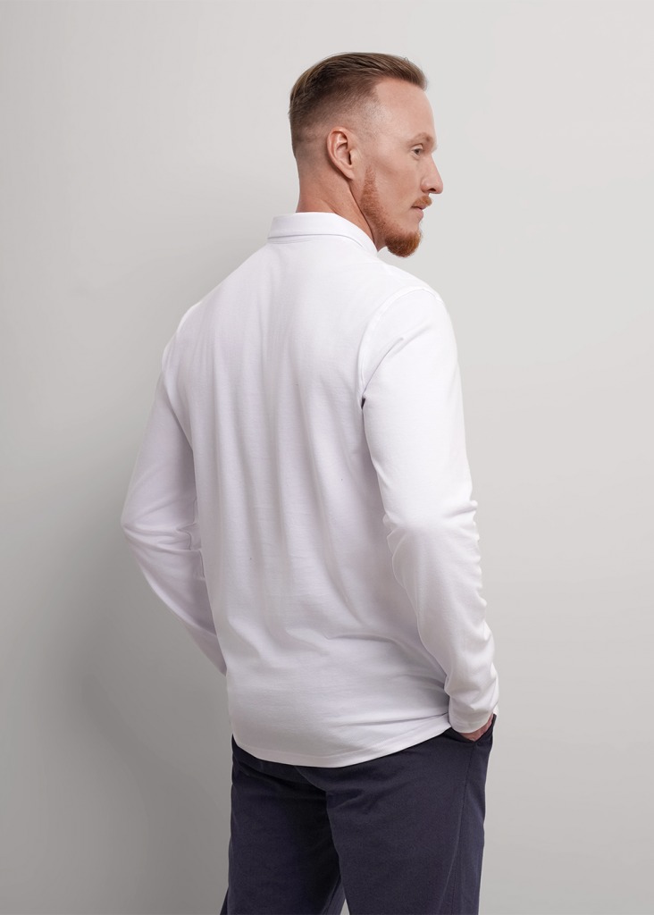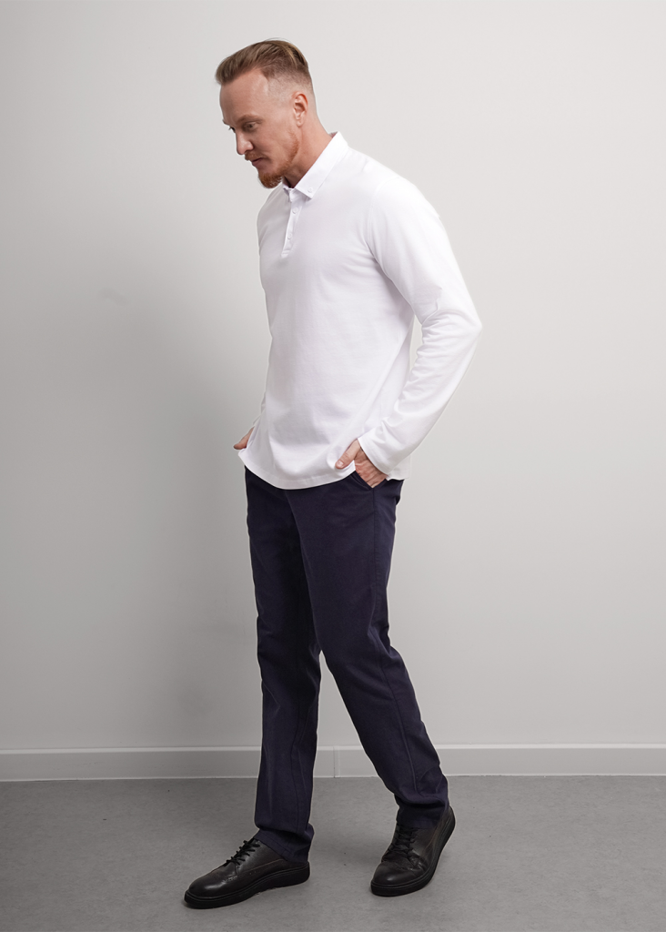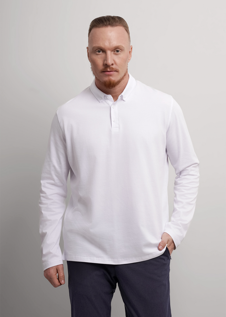 Рубашка-поло с длинным рукавом. Изделие выполнено из трикотажного полотна с кроеным отложным воротником. Модель дополнена фурнитурой. Такая рубашка-поло отлично сочетается с брюками или джинсами и подходит для учебы.