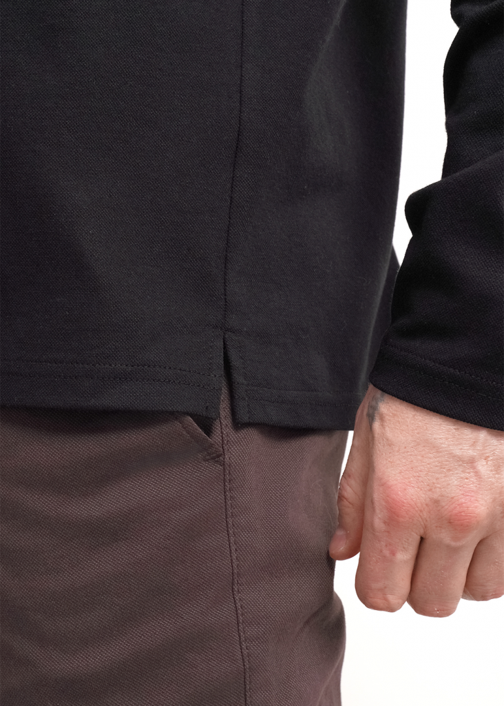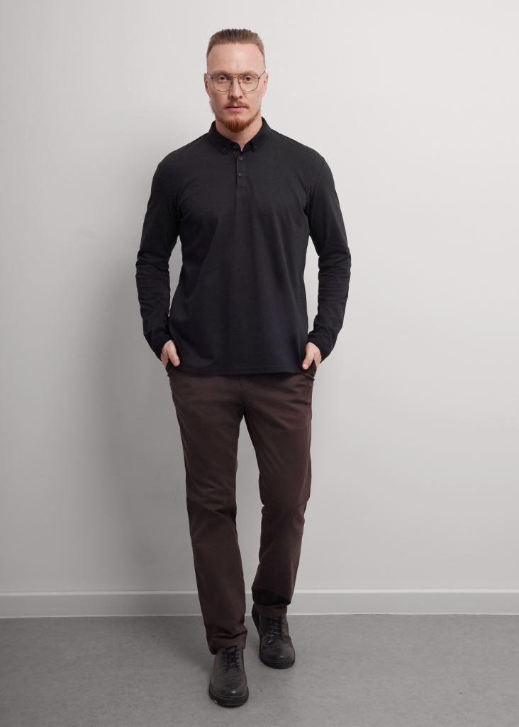 Рубашка-поло с длинным рукавом. Изделие выполнено из трикотажного полотна с кроеным отложным воротником. Модель дополнена фурнитурой. Такая рубашка-поло отлично сочетается с брюками или джинсами и подходит для учебы.