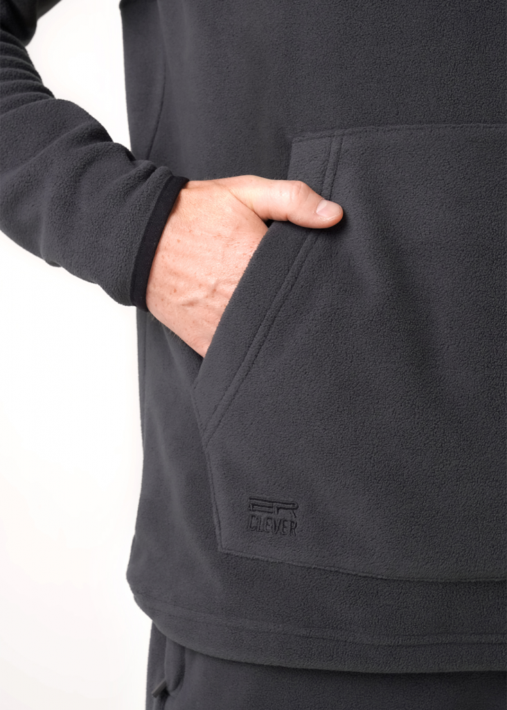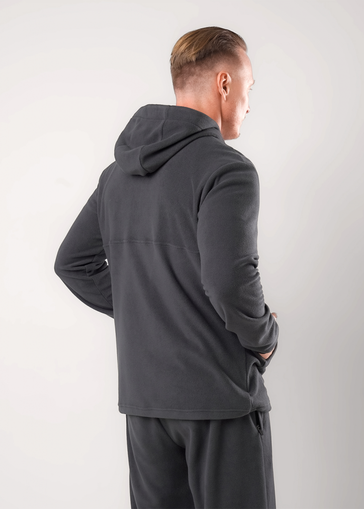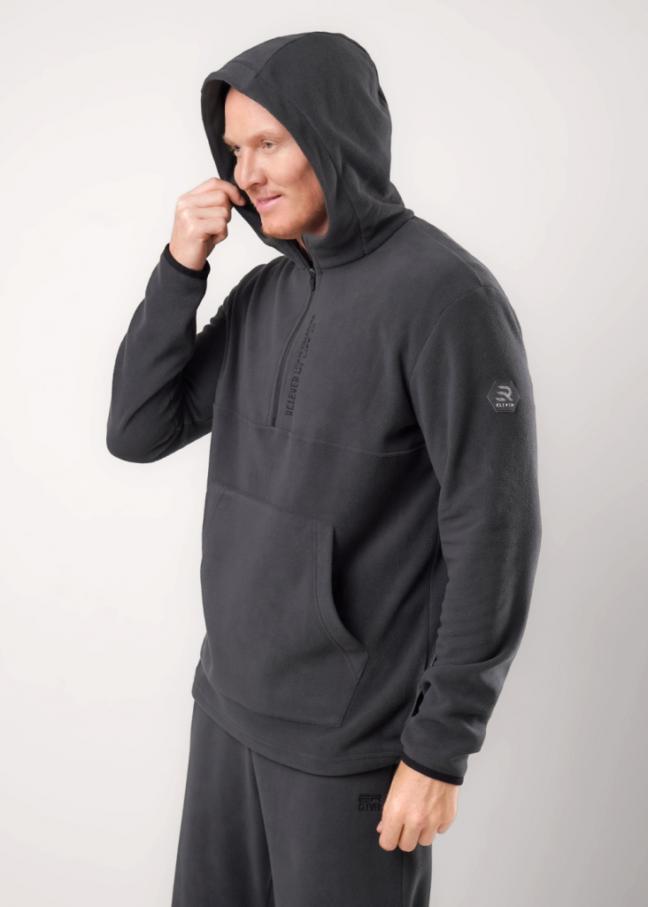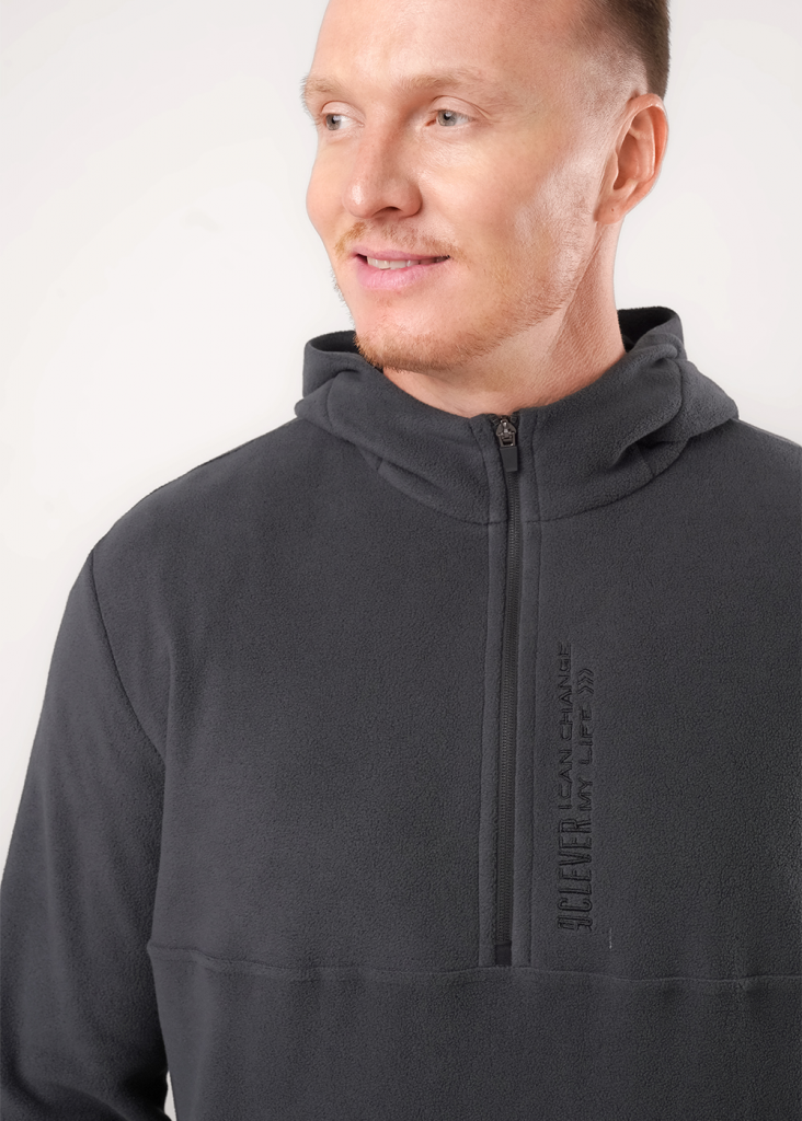 Мужская толстовка выполнена из флиса. Модель с укороченной застежкой на молнию и вместительным карманом, так же дополнена имиджевой вышивкой. Прекрасно подойдёт для холодного времени года.