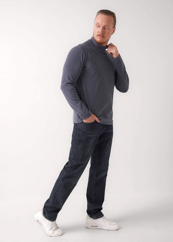 Стильный мужской джемпер из мягкого трикотажного полотна с начесом. Изделие с воротником стойка и длинным рукавом. Отличный вариант на каждый день и встреч с друзьями.