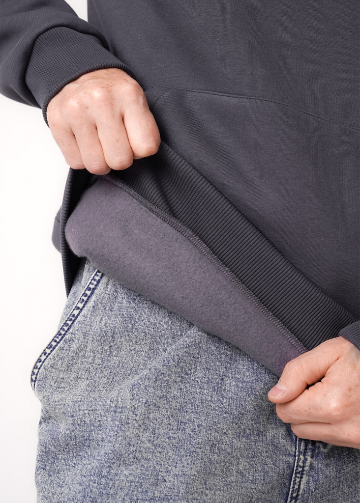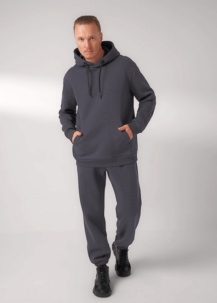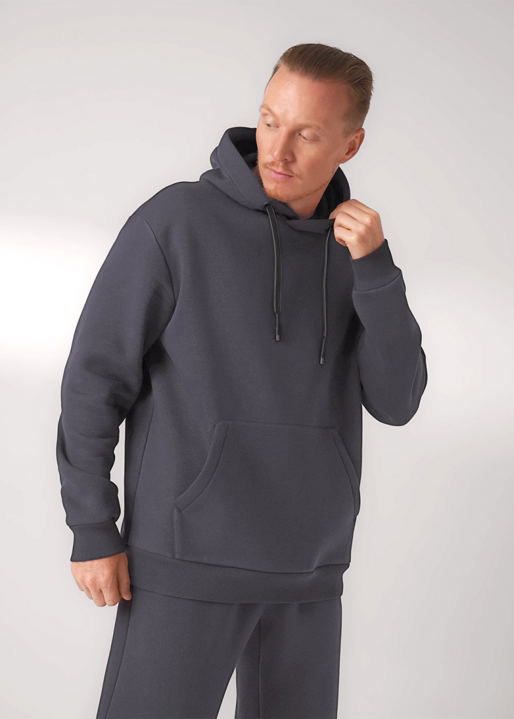 Теплое мужское худи из футера с начесом на капюшоне с регулируемым шнуром, удобным спущенным рукавом и центральным карманом "кенгуру". Изделие дополнено имиджевым принтом. Модель составит отличный комплект с брюками.