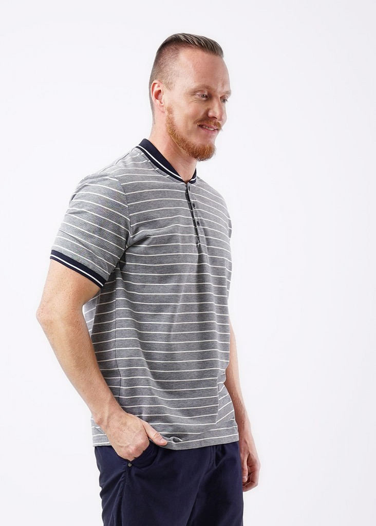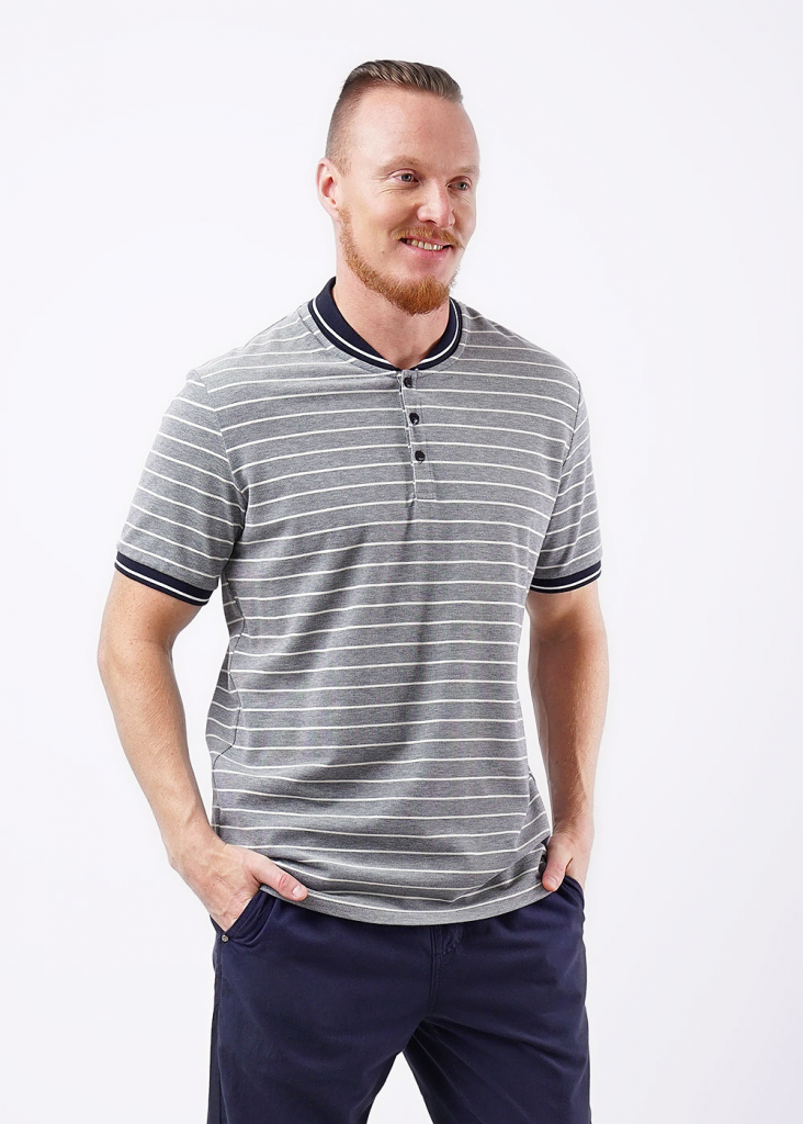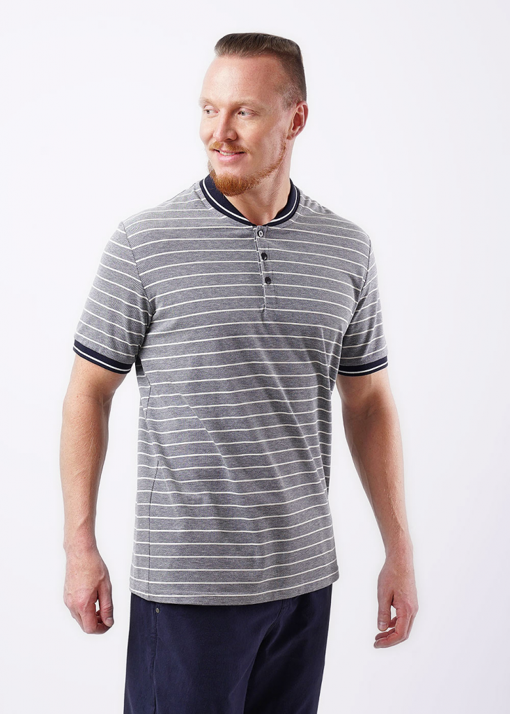 Модная мужская футболка с большим содержанием хлопка с вязаными манжетами и воротником-"шалька". Подойдет на каждый день в сочетании с джинсами или брюками кэжуал.