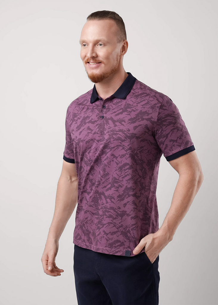 Футболка-поло мужское из хлопкового полотна . Благодаря вязаным отделкам по воротнику и манжетам, а так же имиджевой фурнитуре модель выглядит оригинально. Изделие подойдет к любым брюкам или джинсам.